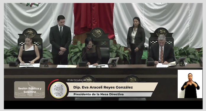 La mesa directiva que presidirá las sesiones quedó integrada por Eva Aracely Reyes González, del partido Morena, como presidenta, y como secretarios, el diputado del partido Movimiento Ciudadano, Juan Carlos Zertuche, y Patricia Saldívar Cano, del PAN.