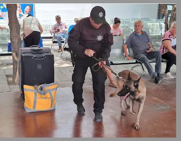 Durante la jornada, el binomio canino integrado por el ejemplar “Flash”, especializado en la detección de narcóticos, llevó a cabo recorridos de inspección en pasillos, salas de espera, andenes y áreas comunes de la terminal.